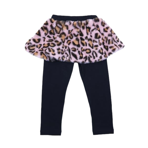 These leggings come with a fun leopard print skirt attached. Appearing like a skirt but offering the comfort and range of movement of leggings, these stylishly modern bottoms blend fashion and function. The furry leopard print skirt is buttery soft, adding an extra layer of warmth for your little ones this winter!
