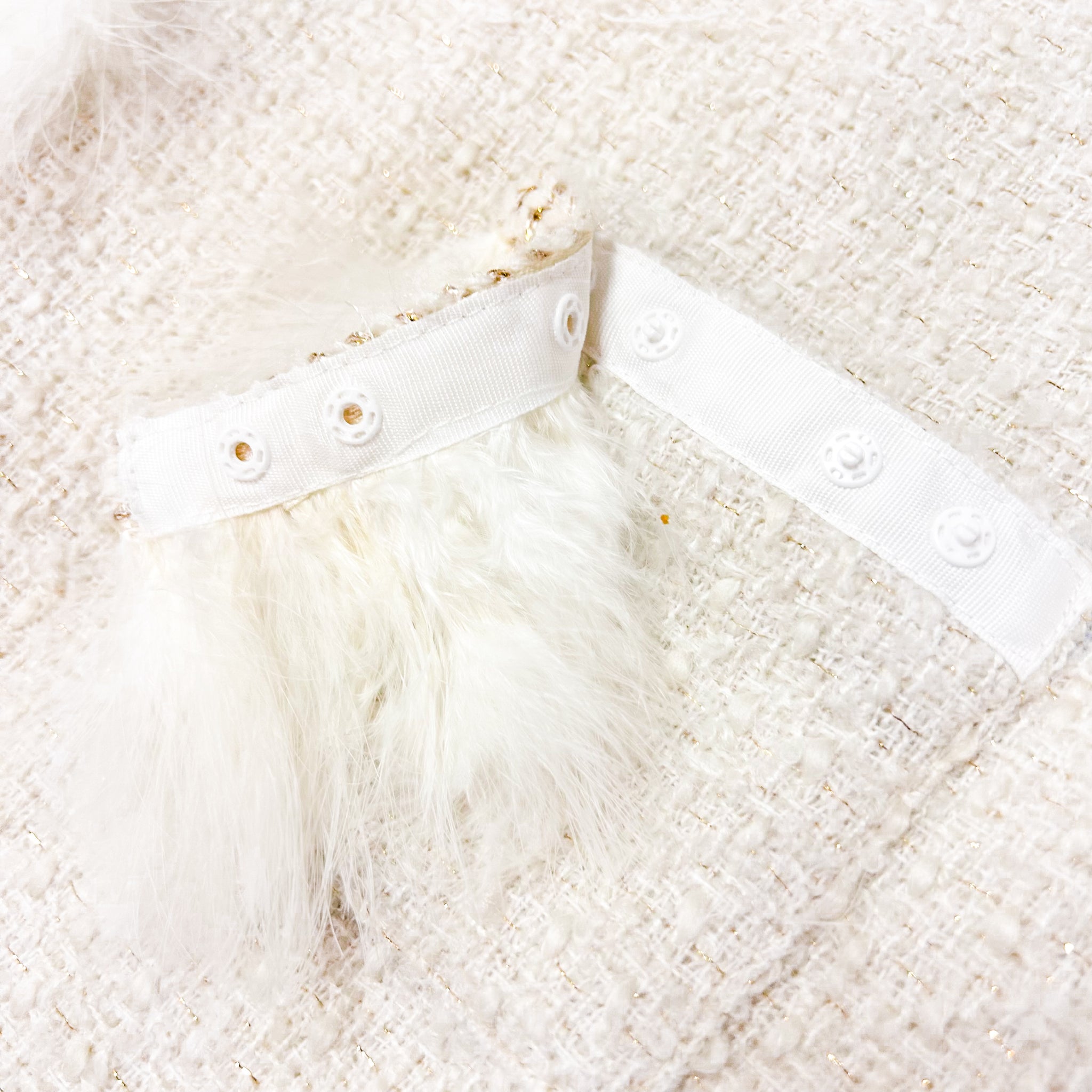 This timeless tweed jacket is crafted for sophistication, elegance, and style with this rich design! The pockets feature a gorgeous feather trim that’s detachable for easy washing! Available in two colors.