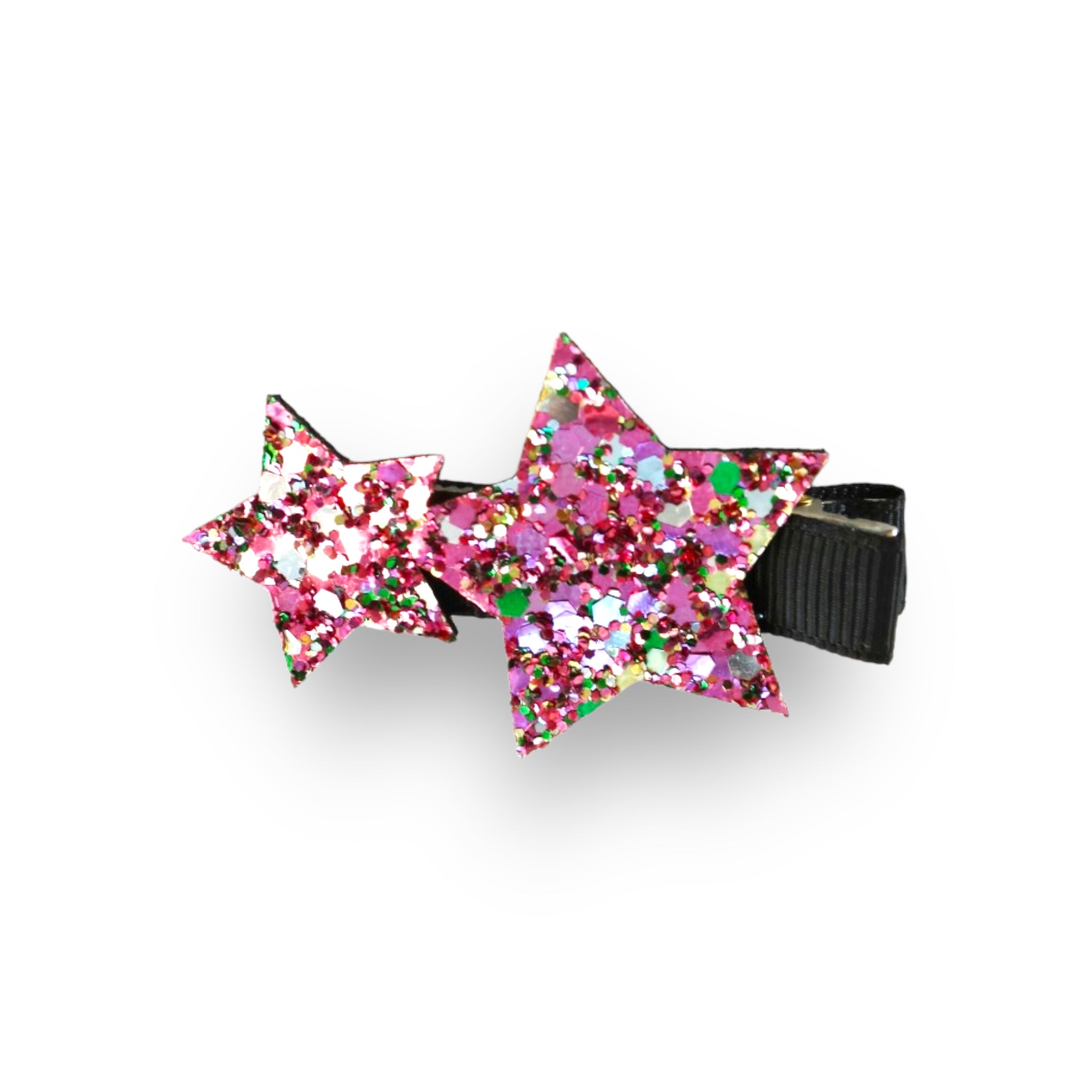 Sparkle up your style with this delightful duo of glitter star hair clips! Perfect for adding a touch of shimmer and whimsy to any hairstyle, these charming accessories bring instant fun and personality to your everyday look.